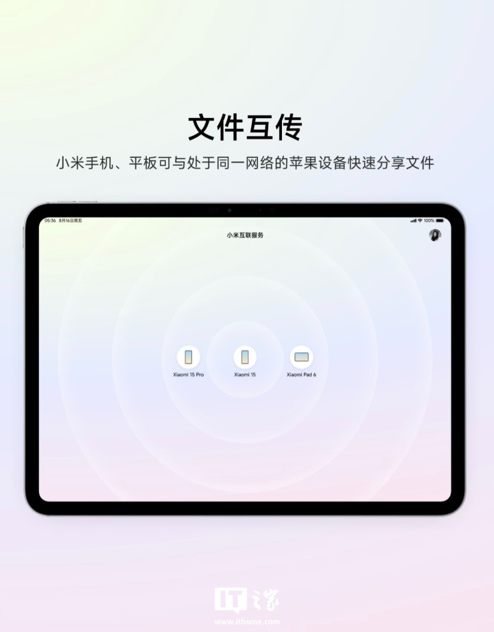 官方介绍称,小米互联服务是一款运行在苹果设备上,并能和小米设备之间进行文件互传、数据流转和桌面共享等跨端协同和控制的应用,与安装有iOS/iPadOS14.0及以上、macOS12.0及以上设备兼容。